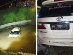 Hindari Mobil dari Arah Berlawanan, Mobil Fortuner Putih Terjun ke Irigasi