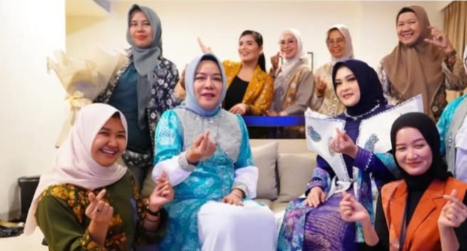 Palembang, IN, – Hj. Linda Apriana Arlan, Ketua TP PKK Kota Prabumulih didampingi Staf Ahli TP PKK, Nuning Mulya Franky, beserta jajaran pengurus TP PKK Kota Prabumulih menghadiri Rapat Konsultasi (Rakon) PKK Tahun 2026 yang dirangkaikan dengan Fashion Show Pesona Wastra Sumatera Selatan., 2 April 2026