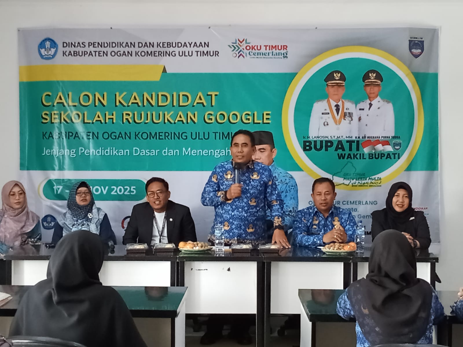 OKU Timur, IN – Sebanyak 26 Sekolah di Kabupaten OKU Timur ditetapkan sebagai kandidat Sekolah Rujukan Google. Jumlah ini menjadikan OKU Timur sebagai salah satu daerah dengan kandidat terbanyak di Sumatera Selatan. Untuk memperkuat kesiapan para peserta, kegiatan Pembekalan Sekolah Rujukan Google digelar di Hotel Ardan Belitang, Senin, 17 November 2025.