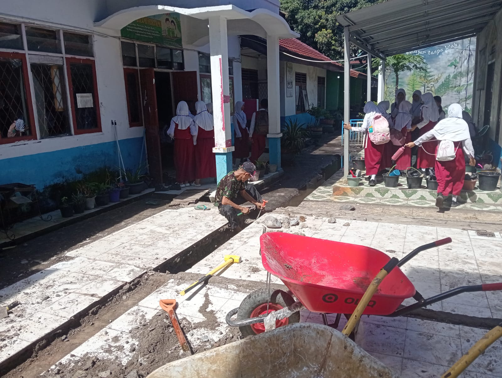 Proses perbaikan drainase tersebut diharapkan dapat selesai dalam waktu dekat, sehingga saat musim hujan tiba, genangan air tidak lagi menjadi persoalan di lingkungan sekolah.