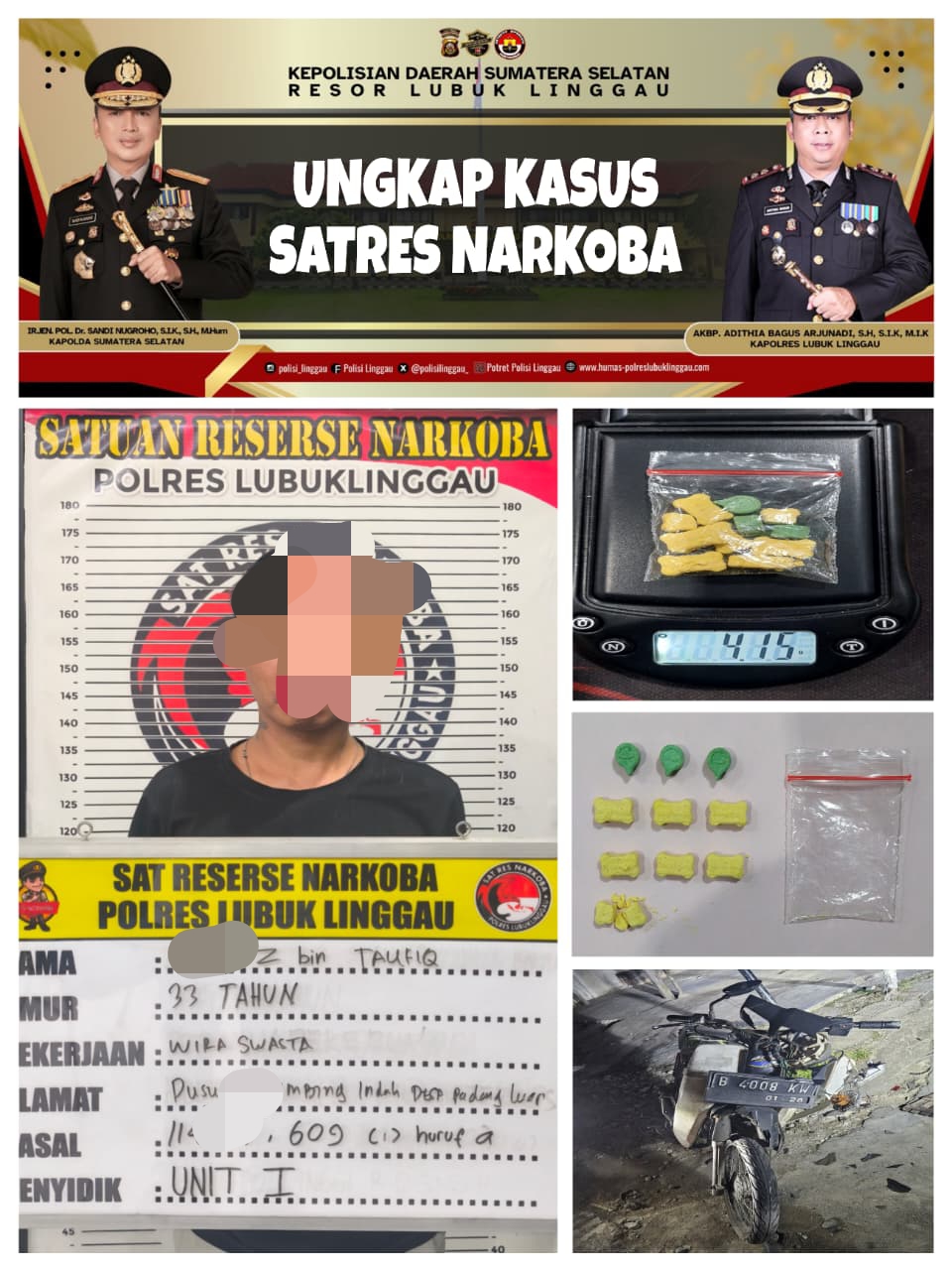 LUBUK LINGGAU, IN — Satuan Reserse Narkoba Polres Lubuk Linggau jajaran Polda Sumatera Selatan berhasil mengungkap peredaran narkotika golongan I jenis ekstasi dengan menangkap seorang tersangka kurir yang beroperasi menggunakan modus pengiriman COD (Cash on Delivery) lintas provinsi, Jumat dini hari (3/4/2026) sekira pukul 00.30 WIB di Jalan Merapi, Kelurahan Wira Karya, Kecamatan Lubuk Linggau Timur II, Kota Lubuk Linggau.