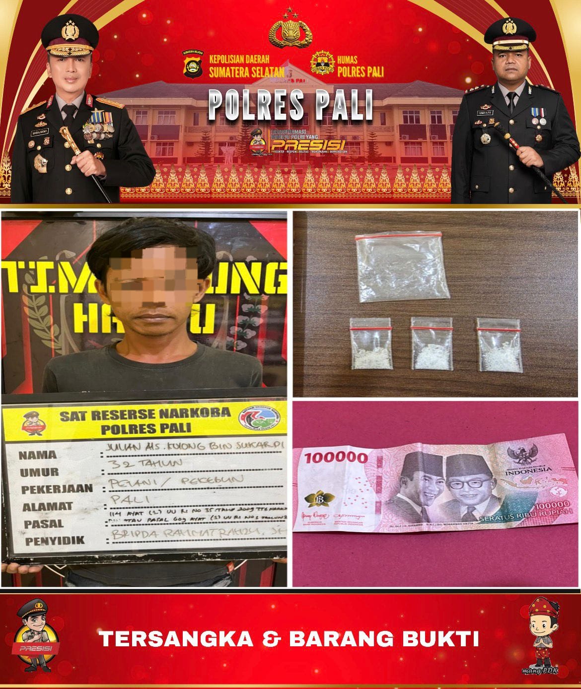 Polres PALI Bekuk Pengedar Sabu yang Hendak Bertransaksi di Depan Gerbang Sekolah, Satu Pembeli Melarikan Diri