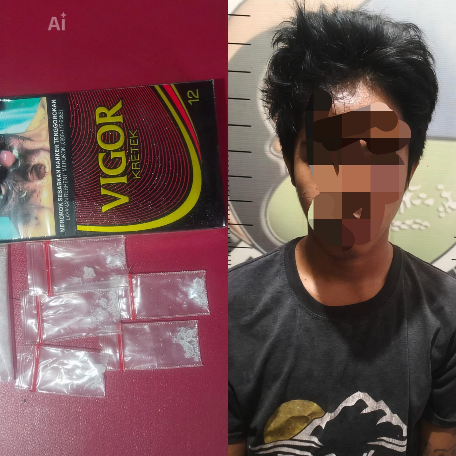 Dalam waktu singkat, petugas berhasil mengamankan tersangka dan melakukan penggeledahan yang disaksikan Ketua RT serta warga setempat guna menjamin transparansi proses. Dari hasil penggeledahan, ditemukan satu kotak rokok yang disimpan di selipan celana jeans bagian depan tersangka.
