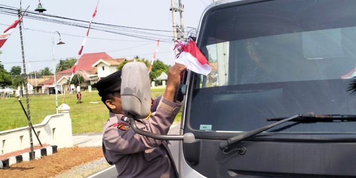 Kapolsek Iptu Swisspo S.H., M.H, juga menyampaikan bahwa pembagian bendera merah putih gratis ini adalah salah satu bentuk nyata pelayanan Polri kepada masyarakat.