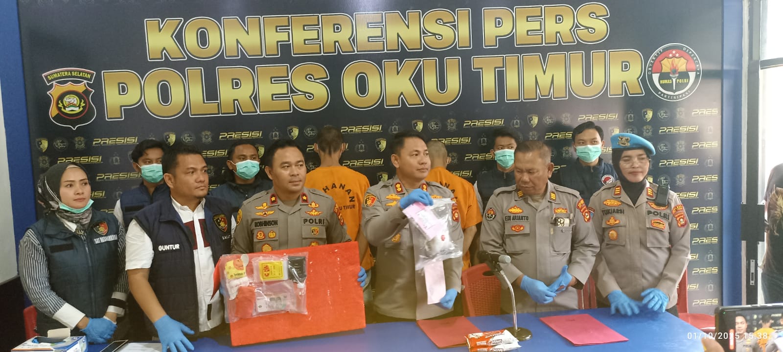 Pengungkapan kasus sabu hampir satu kilogram ini menjadi bukti nyata keseriusan Polres OKU Timur dalam menggulung jaringan narkoba lintas daerah dan Provinsi. (Kiwan)
