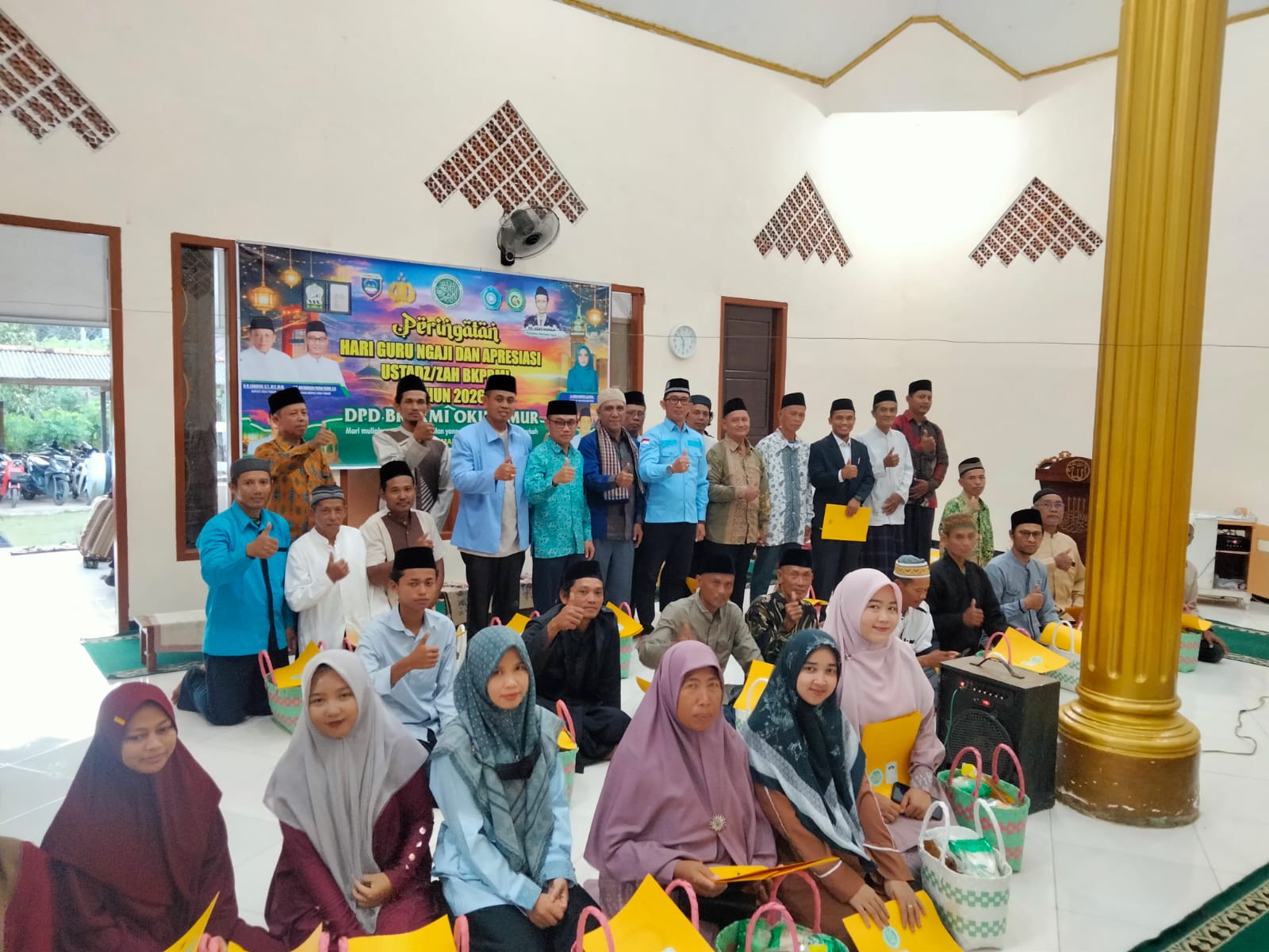 Senin, 16 Maret 2026 di Masjid Roudhotul Huda, Blok Banyumas 2, Desa Pelita Jaya, puluhan guru ngaji berkumpul. Bukan untuk mengajar seperti biasa, melainkan menerima apresiasi atas pengabdian yang selama ini sering luput dari sorotan.