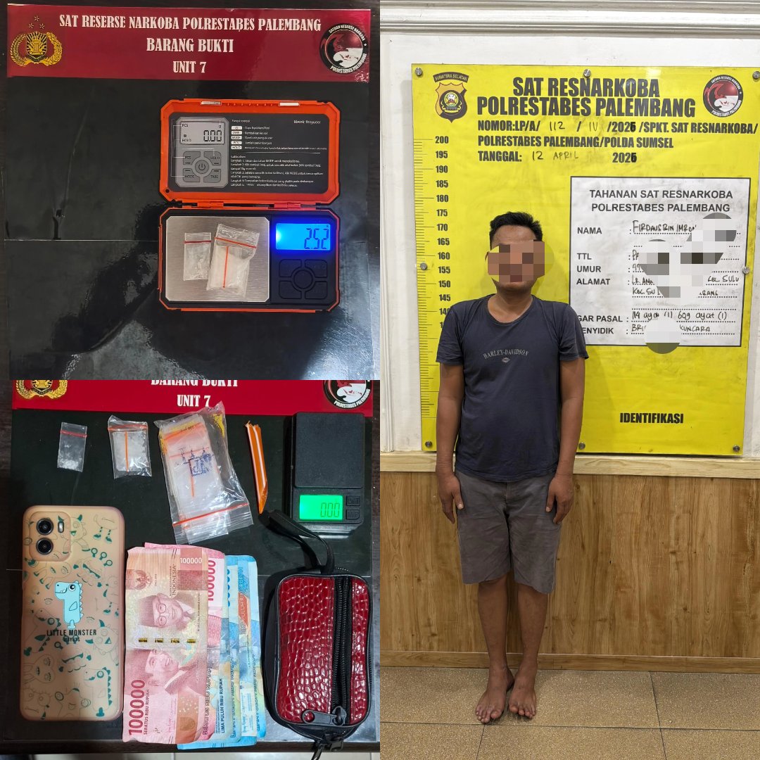PALEMBANG, IN — Polda Sumatera Selatan melalui Satresnarkoba Polrestabes Palembang berhasil mengungkap peredaran narkotika jenis sabu dengan menangkap seorang tersangka di kawasan Jalan KH. Wahid Hasyim, Kelurahan 5 Ulu, Kecamatan Seberang Ulu I, Kota Palembang, Jumat (10/4/2026) sekitar pukul 19.30 WIB.