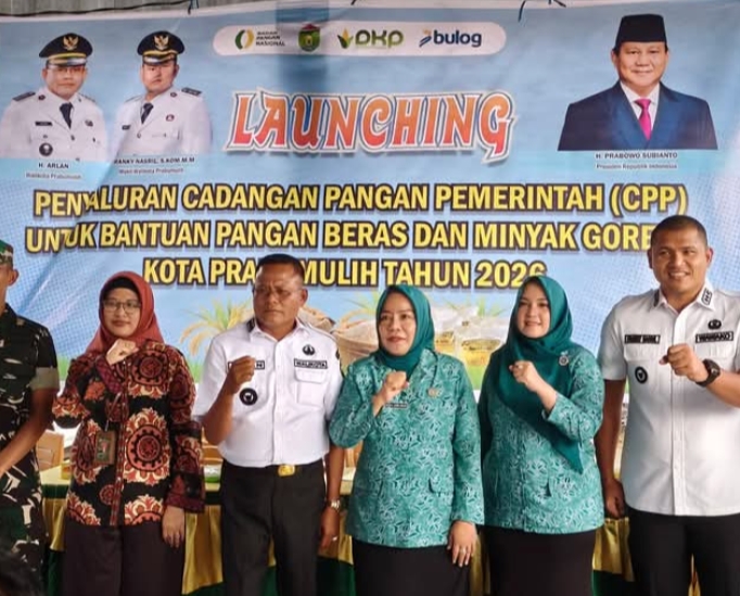 PRABUMULIH, IN – Orang Nomor Satu dikota Nanas.Wali kota.Prabumulih H.Arlan didampingi Wakil Wali Kota Franky Nasril, S.Kom., M.M., Resmi Luncurkan.Penyaluran Cadangan Pangan Pemerintah (CPP) berupa bantuan beras untuk alokasi Februari–Maret 2026. Kegiatan ini dipusatkan di Kalangan Kelurahan Karang Jaya, Kecamatan Prabumulih Timur, Rabu (15/4/2026.